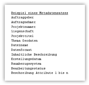Die Beschreibung der Erfassung von Metadaten nach der Norm ISO 19115 ist in Vorbereitung. Vorläufig sind folgende Daten in einer ASCII-Textdatei zu erfassen: