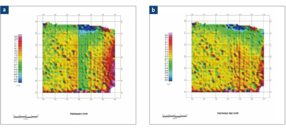 Die kartografische Darstellung der Anomalien zeigt, dass die in den Streifen gemessene Störkörperdichte des Flugfeldes gut in die nicht untersuchten Flächen interpoliert werden kann. Dies belegen auch die beispielhaft untersuchten Quadrate.