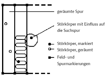 Aus der Nachbarspur hereinreichende Störungen sind ebenfalls zu markieren, freizulegen und zu bergen, um ein Verdecken von kleinen Störkörpern zu verhindern.