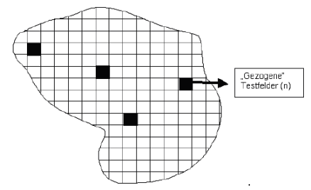 Für eine systematische Auswahl von Testfeldern können statistische Verfahren der Stichprobenplanung hilfreich sein. Damit können wissenschaftlich begründete Hochrechnungen auf der Basis von Zufallsstichproben erstellt werden. Die Zufallsstichproben sind die notwendige Voraussetzung für die Repräsentativität der Stichproben bzw. der Testfelder, von denen auf die Grundgesamtheit, d. h., das gesamte Verdachtsgebiet geschlossen werden soll.