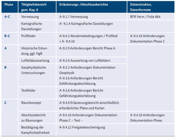 Für den Bereich der Kampfmittelräumung werden diese im Anhang A-9 konkretisiert. Folgende Festlegungen sind zu beachten: