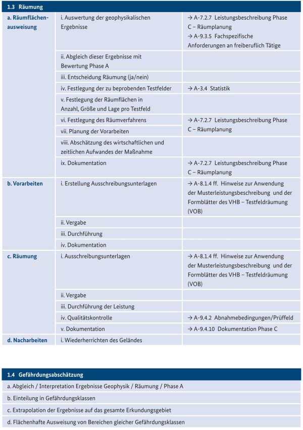 Die Räumung der Testfelder folgt weitgehend den Anforderungen an die Räumung der Phase C und wird an dieser Stelle nicht näher beschrieben.
