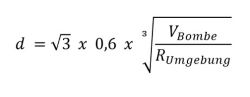 Als Volumen können die in der nachfolgenden Tabelle aufgeführten Angaben genutzt werden. Sofern Angaben zur vermuteten Abwurfmunition nicht vorliegen, sollte ein Volumen von 0,024 m3 genutzt werden, welches einer 100 lb GP US Sprengbombe entspricht.